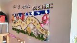 Après quelques semaines d'activités, les PS ont préparé une fresque représentant l'histoire des 3 petits cochons. Ils peuvent être très fiers d'eux.